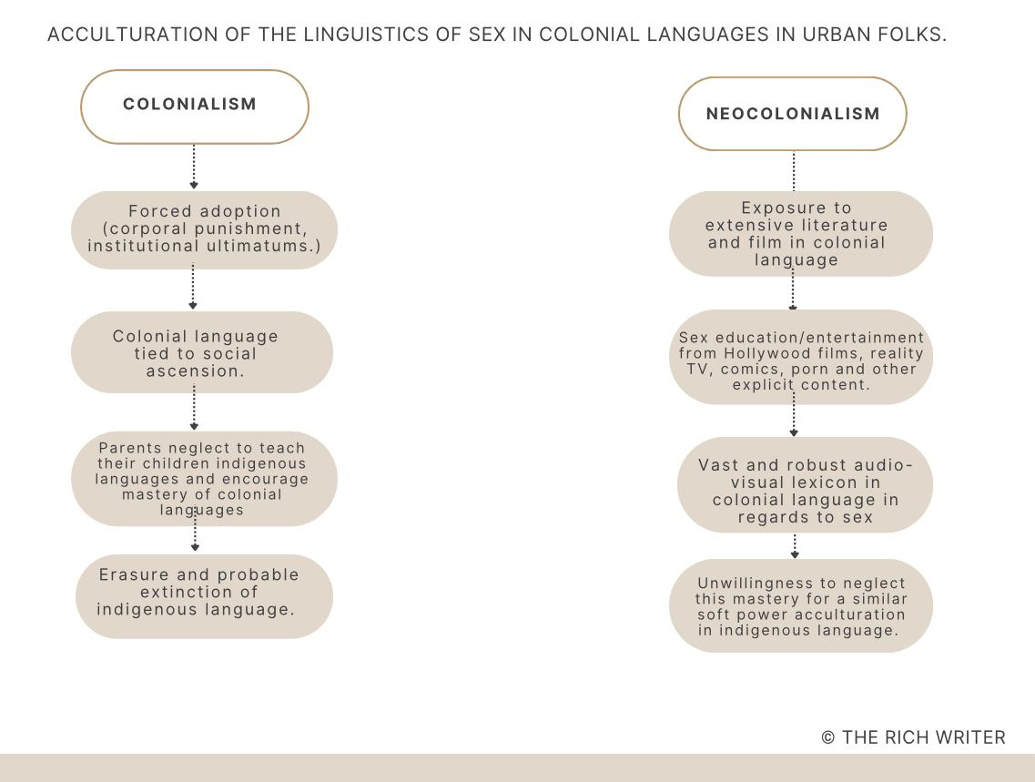 Across Africa, in the world at large even, a pervasive linguistic preference for vulgarity in English exists in the performance of sex acts and, as always, colonialism and neocolonialism are to blame